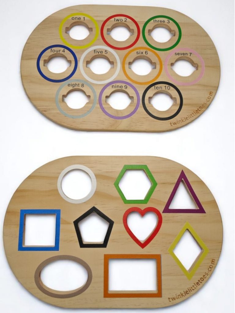A shapes board that introduces children to basic geometry, spatial awareness, and pattern recognition.